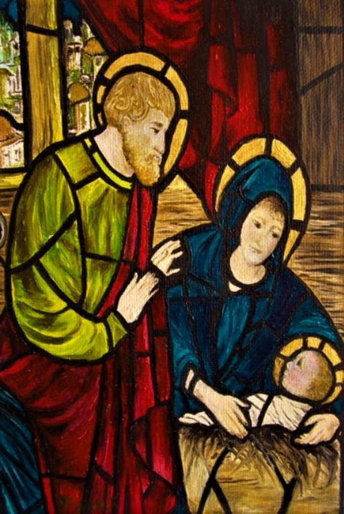 Geboorte van Jezus Glas in lood geschilderd in olieverf