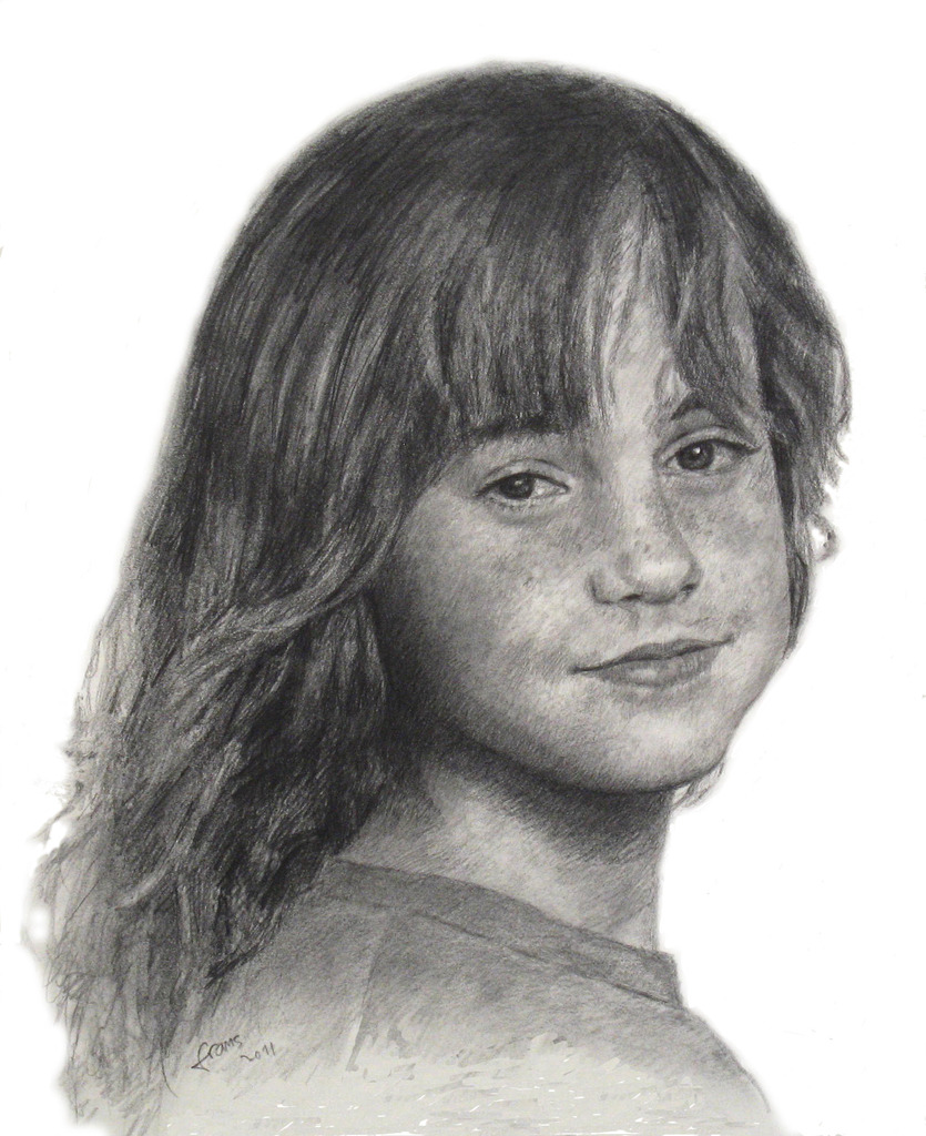 Meisje Kind Portret Potlood Schets Tekening