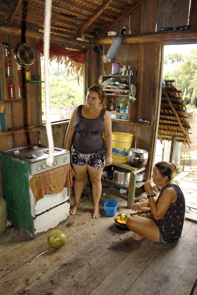 keuken van Indianenfamilie, Amazone, Brazilië