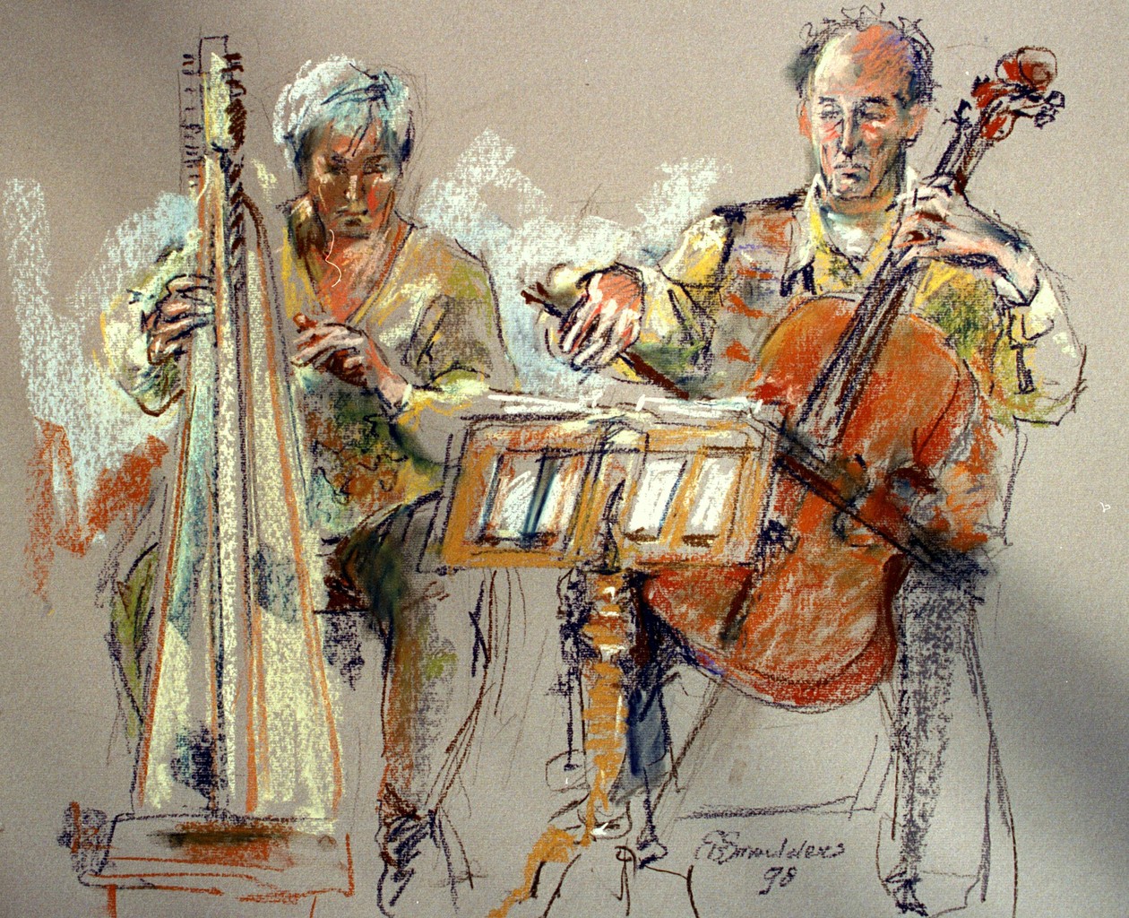 Van The En De Pastelkrijt Harp Cello Pastels Loo Mi-teinte Gerdien Mi-teintepapier
