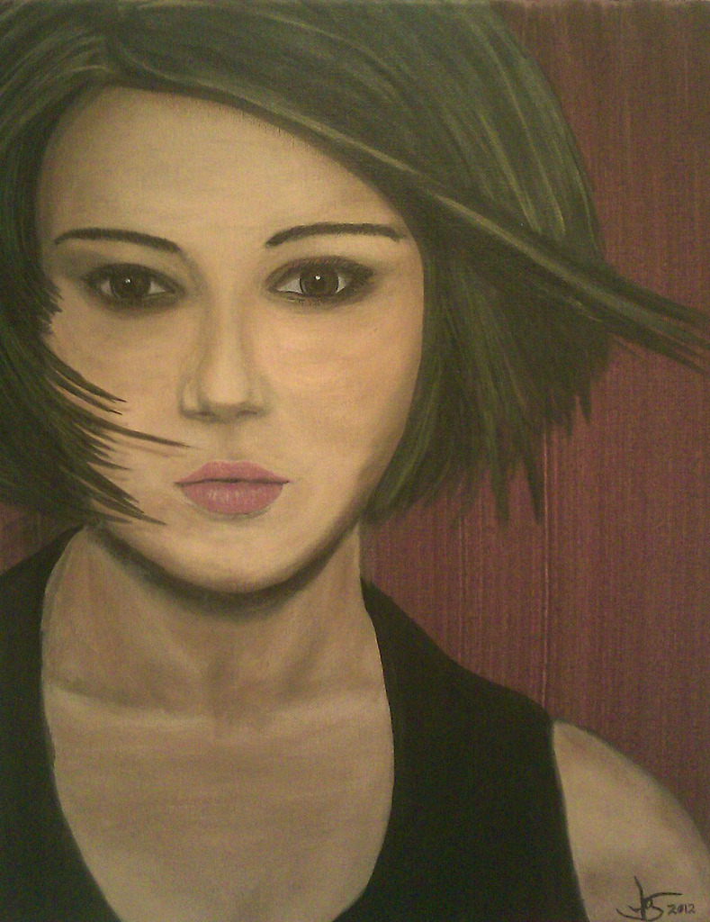 Portret Woman Portrait Green Acrylic Donker Girl Haar Meisje Acryl Groen Vrouw Hair Dark