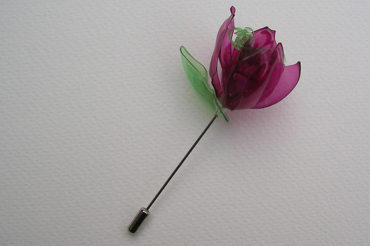 broche van paarse en groene PET-fles