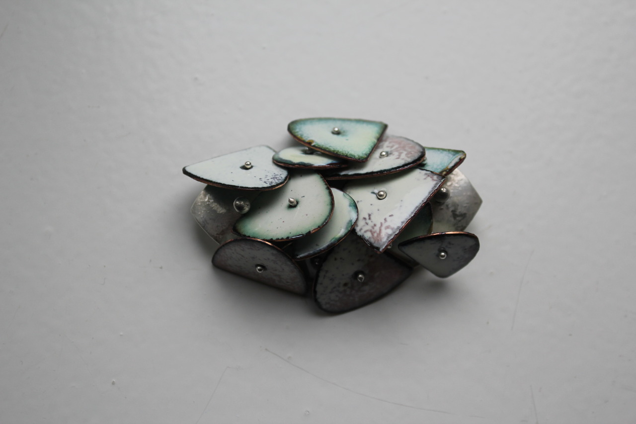 emaille broche, met losse elemenenten. beweeglijk., op zilver Prijs: € 50,-