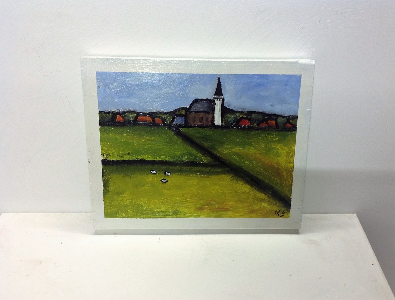 Schildering op hout. Skyline Den Hoorn Texel. 27 x 35 x 3 cm. VERKOCHT.