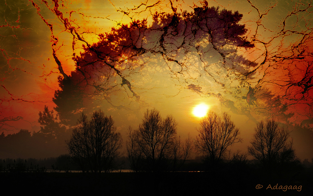 Bomen Landschap Zonsondergang Structuur Boom Bewerkt Trees Landscape Sunset Tree