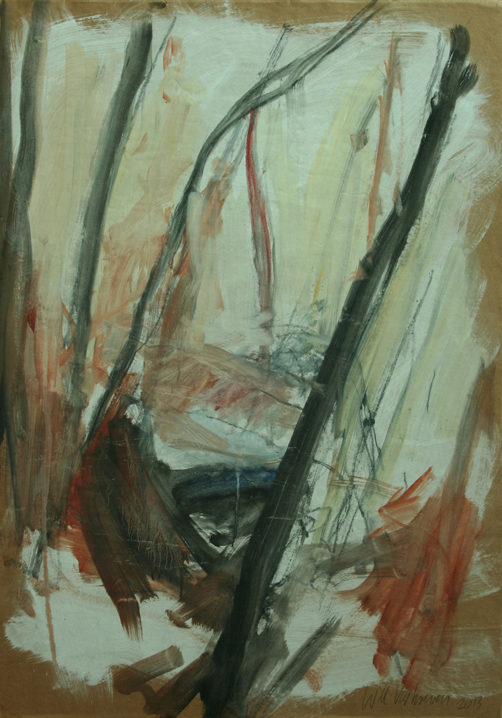 Schilderen raakt mijn ziel en lokt die. Hij (of zij?)kan zich manifesteren door verf in vorm, kleur, beweging. En de ziel wil zich graag laten zien. Voor mij is altijd beleving het voertuig. Ik ben niet persé bezig met vorm of kleur maar met beleving. ‘Toelaten’ en ‘Meestromen’ zijn belangrijke woorden.