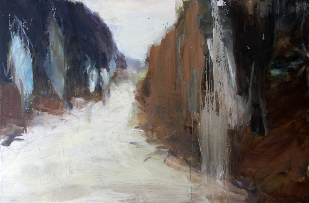 Schilderen raakt mijn ziel en lokt die. Hij (of zij?)kan zich manifesteren door verf in vorm, kleur, beweging. En de ziel wil zich graag laten zien. Voor mij is altijd beleving het voertuig. Ik ben niet persé bezig met vorm of kleur maar met beleving. ‘Toelaten’ en ‘Meestromen’ zijn belangrijke woorden.