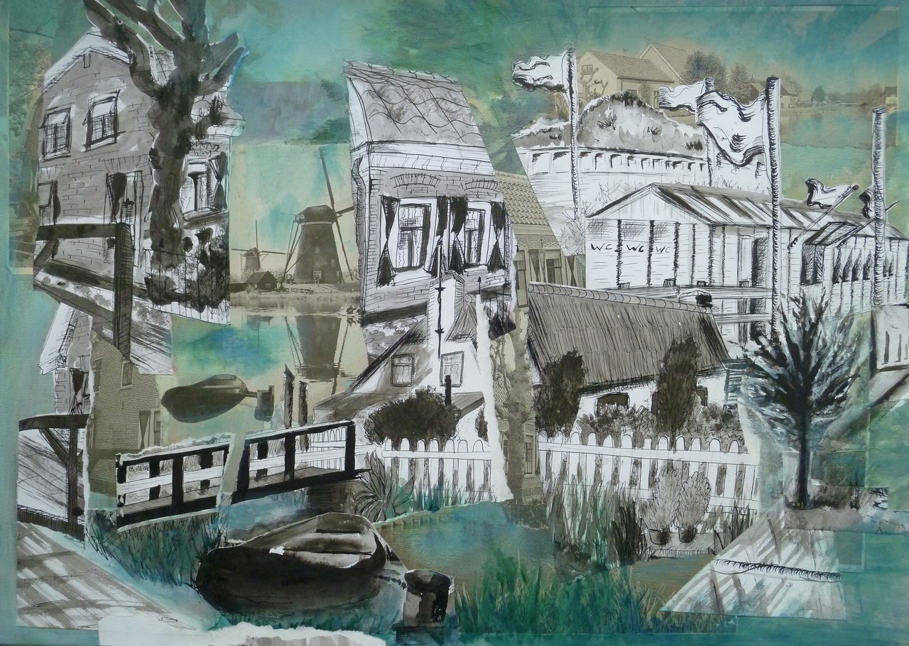 Holland Collage Inkttekening Zwart / Wit