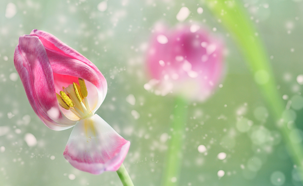 Dubbelzinnigheid Fotografie Lifeware Tulpen Bloemen Natuur Lente Voorjaar Winter Sneeuw Bokeh