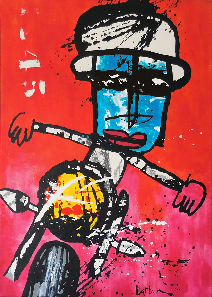 Modern, abstract en figuratief. Mijn acryl op canvas kenmerkt zich door intens sprekende kleuren omgeven door een hoog contrast. Geboren in een consumptie maatschappij laat ik mij veelal inspireren door mijn achtergrond en werk als illustrator en geef ik uiting aan wat ik zie, voel en beleef.