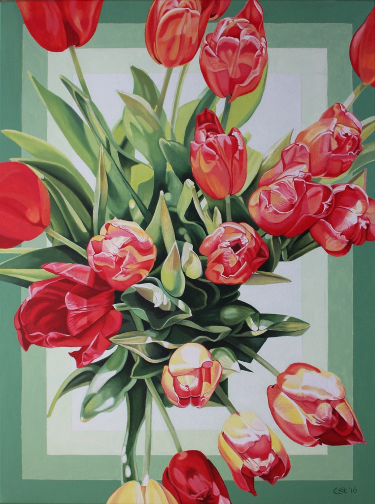 Lente Bloemen Boeket Rood Groen Olieverf Realistisch