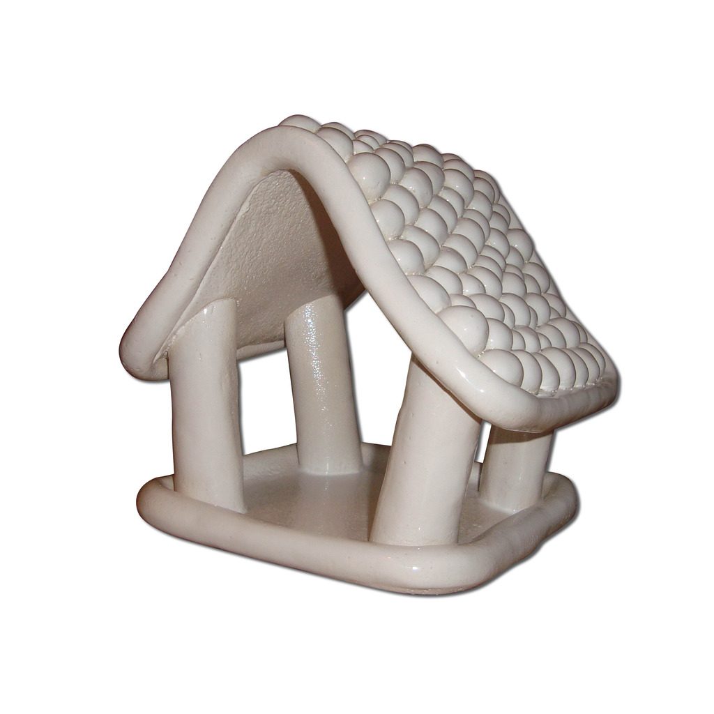 Werkwijze: Handmatig gerolde bolletjes en handmatig samengesteld. Materiaal: Witbakkende fijne chamotte klei. Deklaag: Wit glanzend glazuur.