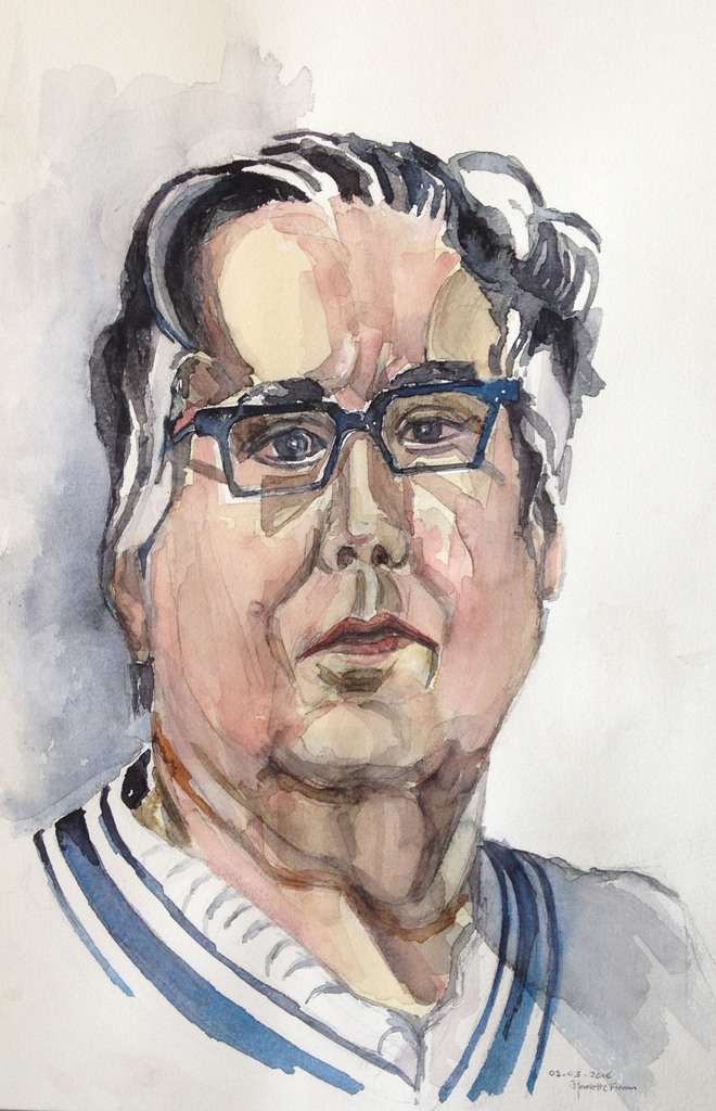 Tonny, oud - collega en kennis. Aquarel. Werk is in particulier bezit.