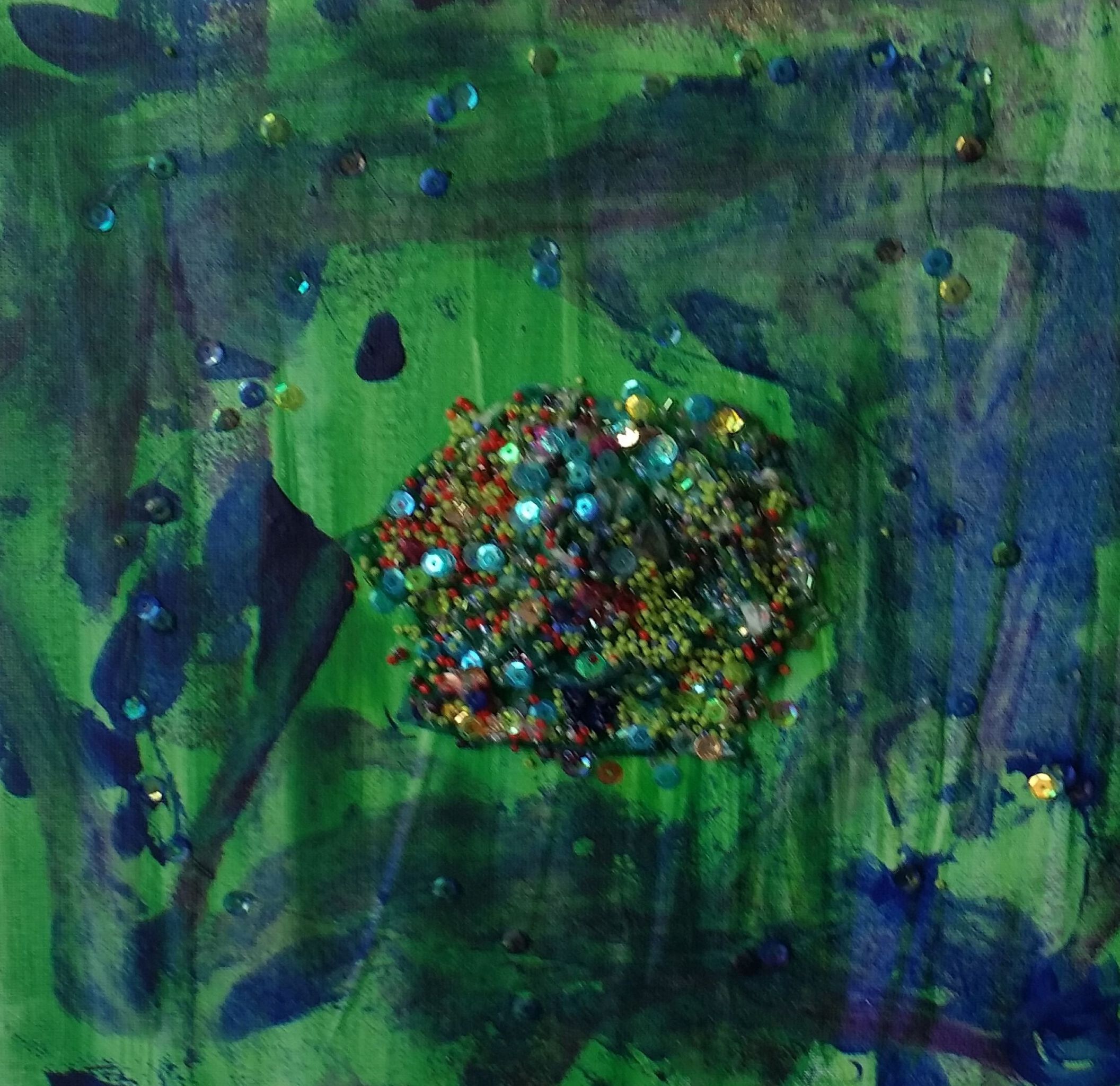 Schilderij Abstract Groen Gemengde Techniek Gekleurd