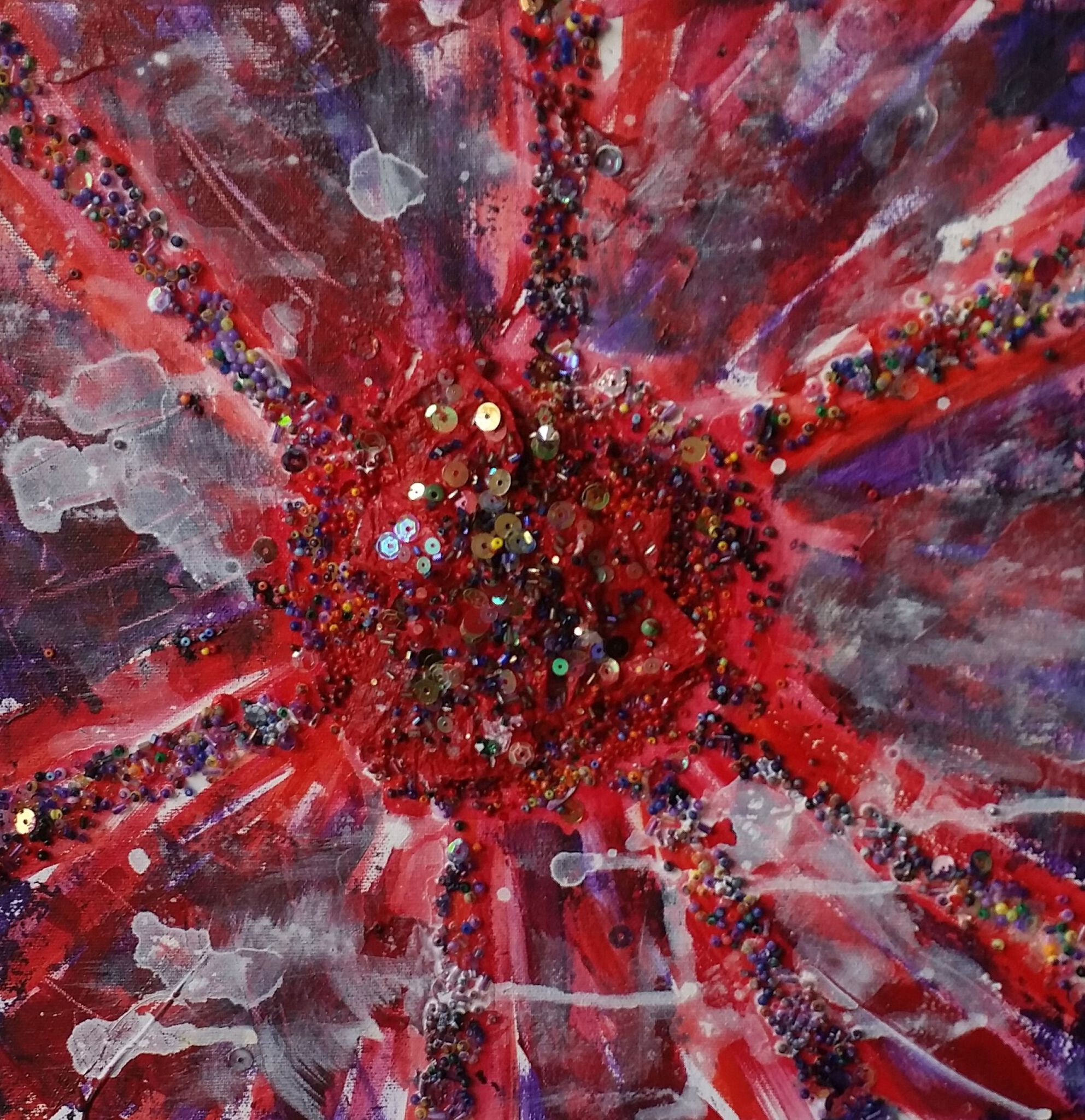Schilderij Abstract Rood Kleuren Gemengde Techniek