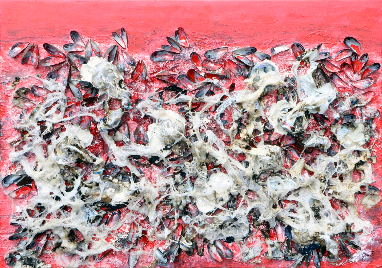 Jan Bastiaans (Mill 1955) Hij begint met een leeg doek en een leeg hoofd. In combinatie met acrylverf en mixed media hebben ze veelal een abstract, abstract figuratief of organisch karakter. Het is vrij experimenteel werk;door de verschillende materiaalsoorten en acrylverf ontstaan er spontaan vaak dynamische composities die hij verder uitwerkt. Zijn grootste drijfveer zijn de spanning en de (on) mogelijkheden van de materie tijdens het werk. Hij werkt altijd met de primaire kleuren tijdens het schilderen (of wit,zwart) en nooit met een penseel maar altijd met een spons. De schilderijen zijn rondom wit, voor zijn gevoel geeft dat veel ruimte.