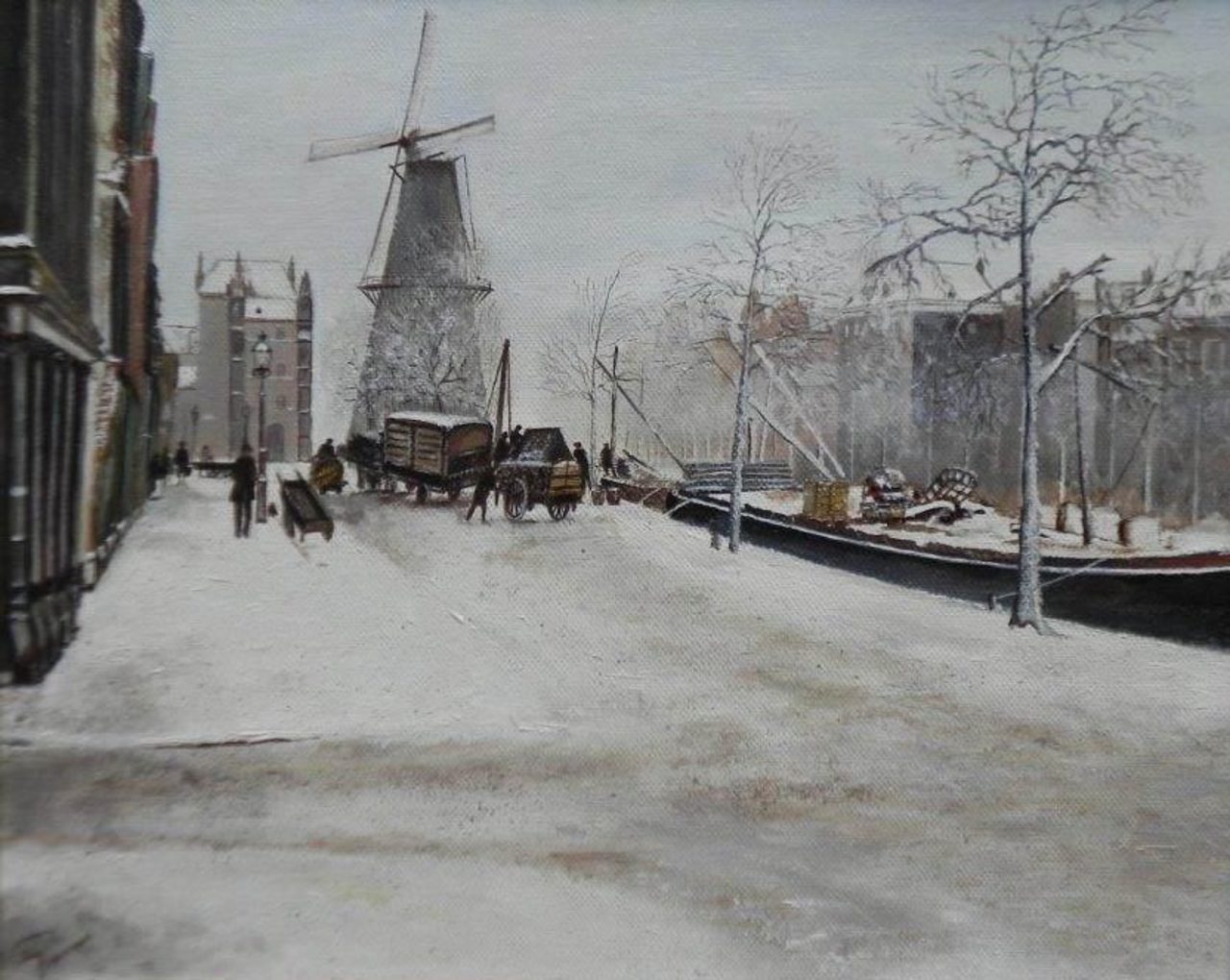 "Winter in Rotterdam"-1910. Leuvehaven, Gelderschekade, Boschje, Coolvest en Coolsingel.In opdracht; Fam Van Jaarsveld Woerden.