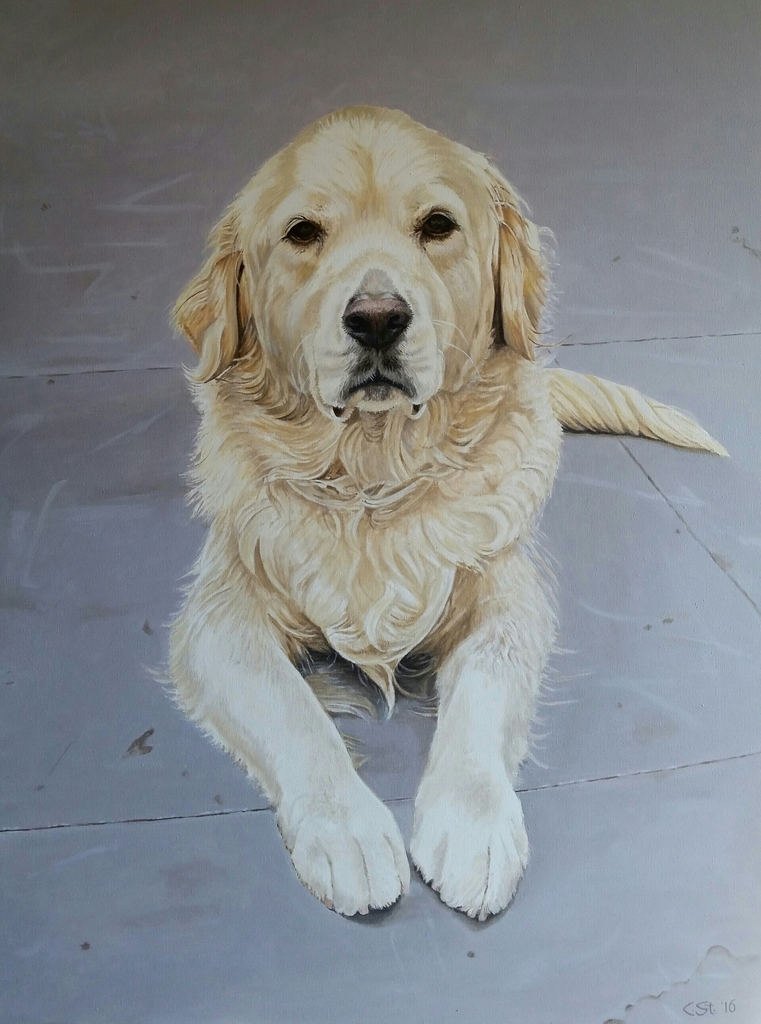 Hond Golden Retriever Olieverf Realistisch Grijs Licht Beige