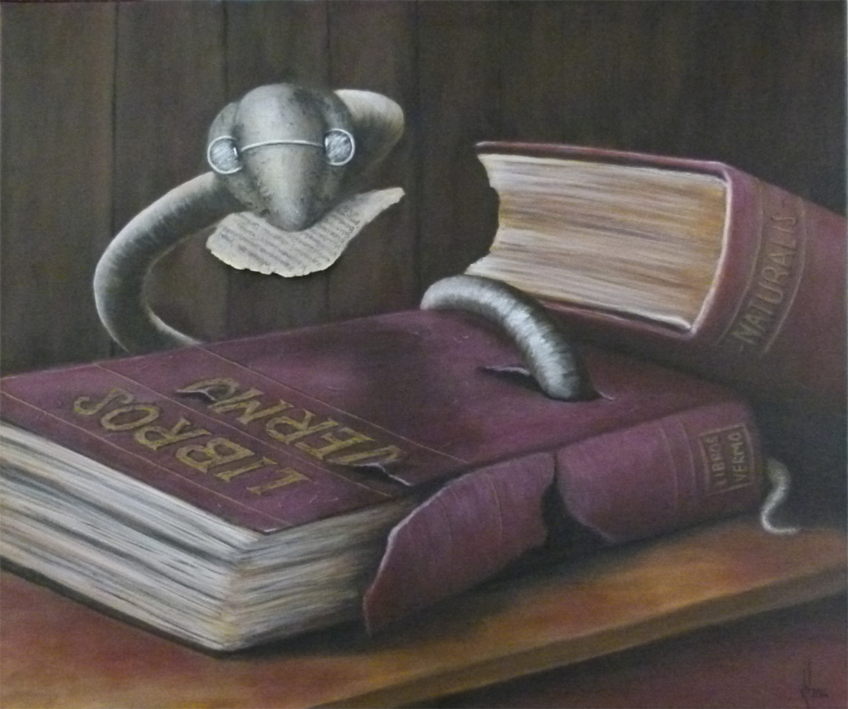 Rood Acryl Bruin Dier Slang Boeken Wijsheid Worm Literatuur Interieur Gezegde Boekenwurm