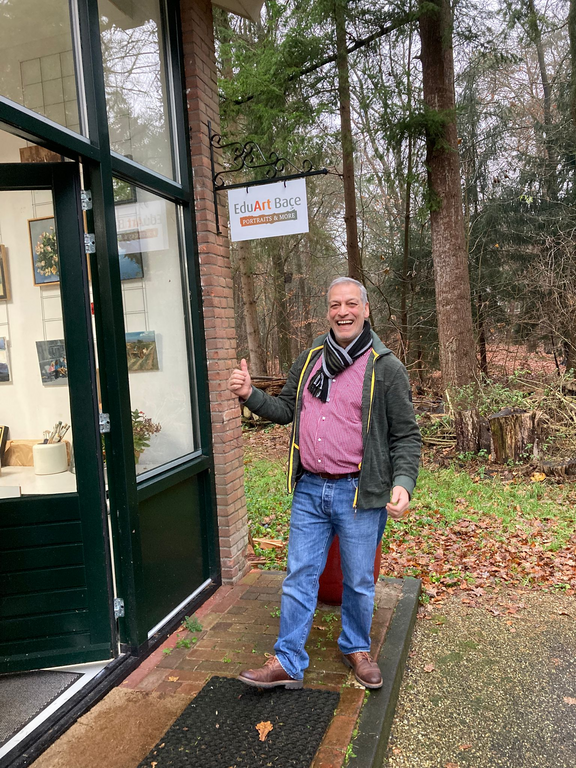 Eduart Baçe (1967) studeerde beeldhouwen aan de Kunstacademie van Tirana (Albanië). Na zijn afstuderen in 1990 gaf hij teken/schilder- en beeldhouwlessen aan de Middelbare School voor de Kunsten. Hij won diverse prijzen en kreeg zo de mogelijkheid om naar het buitenland te reizen. Sinds 1994 woont hij in Nederland en maakt naast zijn vrije werk muurschilderingen, beeldhouwwerken en portretten in opdracht. Zijn werk werd tentoongesteld in Albanië, Griekenland, Turkije, België en Nederland. Hij schildert vrijwel uitsluitend menselijke figuren, portretten en karakters. Eduart Baçe is een veelgevraagd portrettist. Sinds januari 2010 is Eduart gediplomeerd Docent Beeldende Kunst en Vormgeving, en geeft verschillende lessen en workshops oa in de Gooise Academie te Laren.