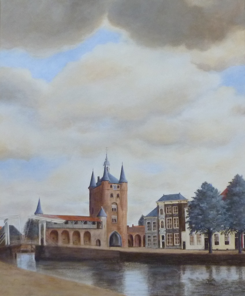Naar het voorbeeld van 'Gezicht op Delft' van Johannes Vermeer.