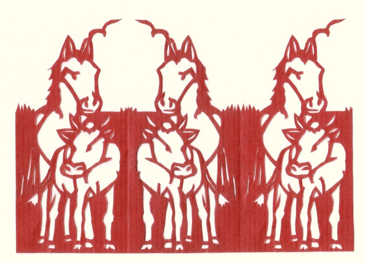 Fauna Rund Koe Paard Ros Papier Rood Knipkwerk Knipkunst