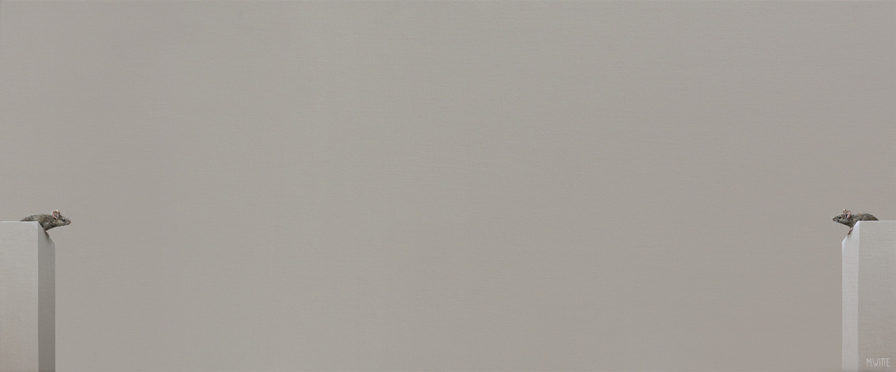 Marcel Witte is een visuele verhalenverteller die de hedendaagse maatschappij subtiel bekritiseert. Zijn schilderijen van dieren tegen een lege achtergrond balanceren tussen realisme en fantasie.