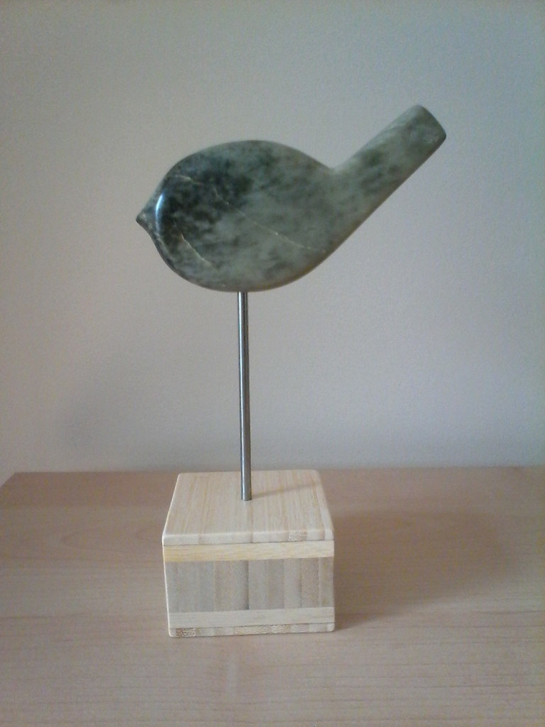 Vogeltje uit braziliaans speksteen op hout.