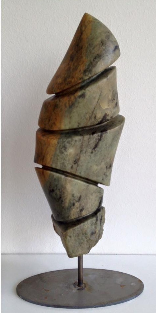 Braziliaanse speksteen in mooie gevlamde kleuren. Als vanzelf is dit beeld ontstaan.