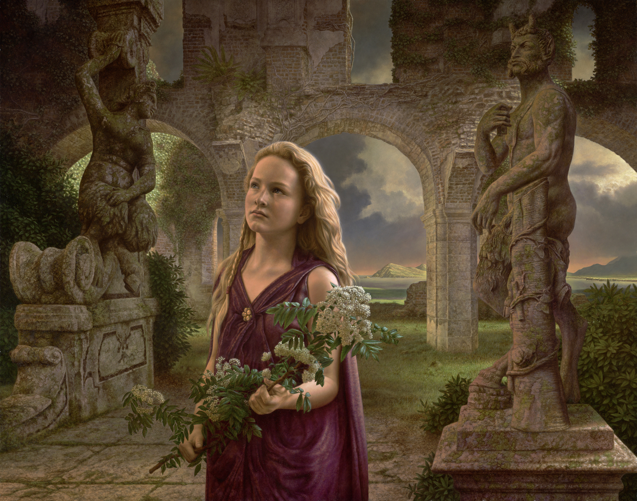 Goddess Ruin Statues Priestess Satyr Sater Druïds Druïden Meisje Groen Vrouw Woman Green Girl Realism Beelden Godin Priesteres Ruïne Eiland Pan Fijnschilderen Fineart Pagan Inwijding