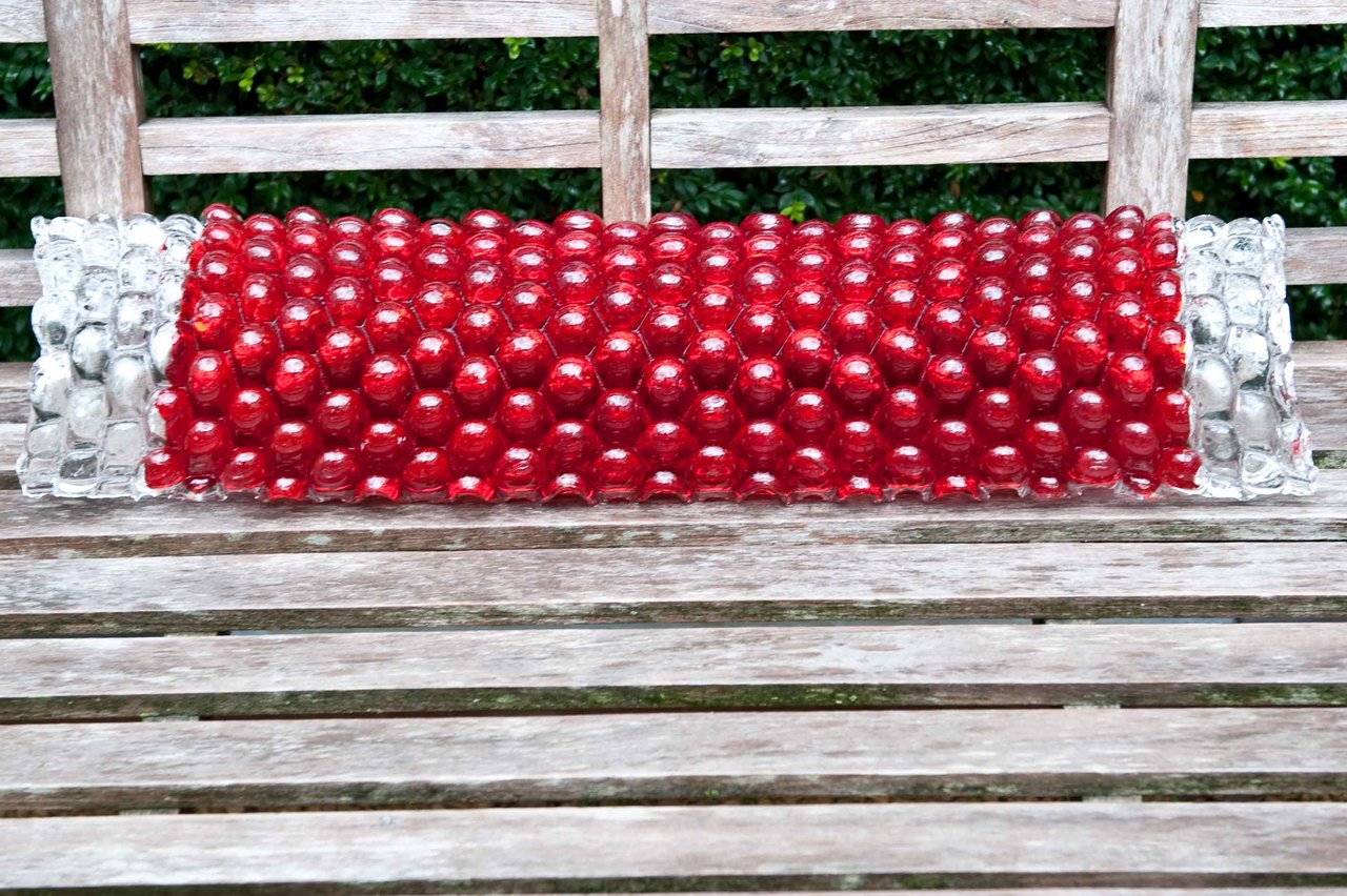 Glas design structure uitdeinend steeds sneller wordt ik aangezogen door glinsterend glas op een bedje van gloeiend rood voel ik mij bekoord alsof dit het laatste was sprankelend licht weerkaatst oneindigheid ontploft in een majestueuze onwaarschijnlijkheid licht en glas mijn grote liefde fets