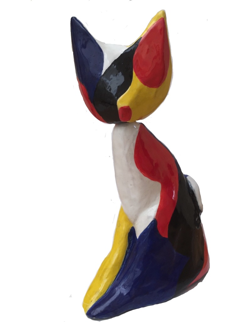 Geglazuurd keramiek. De kop van de kat kan van stand veranderen.