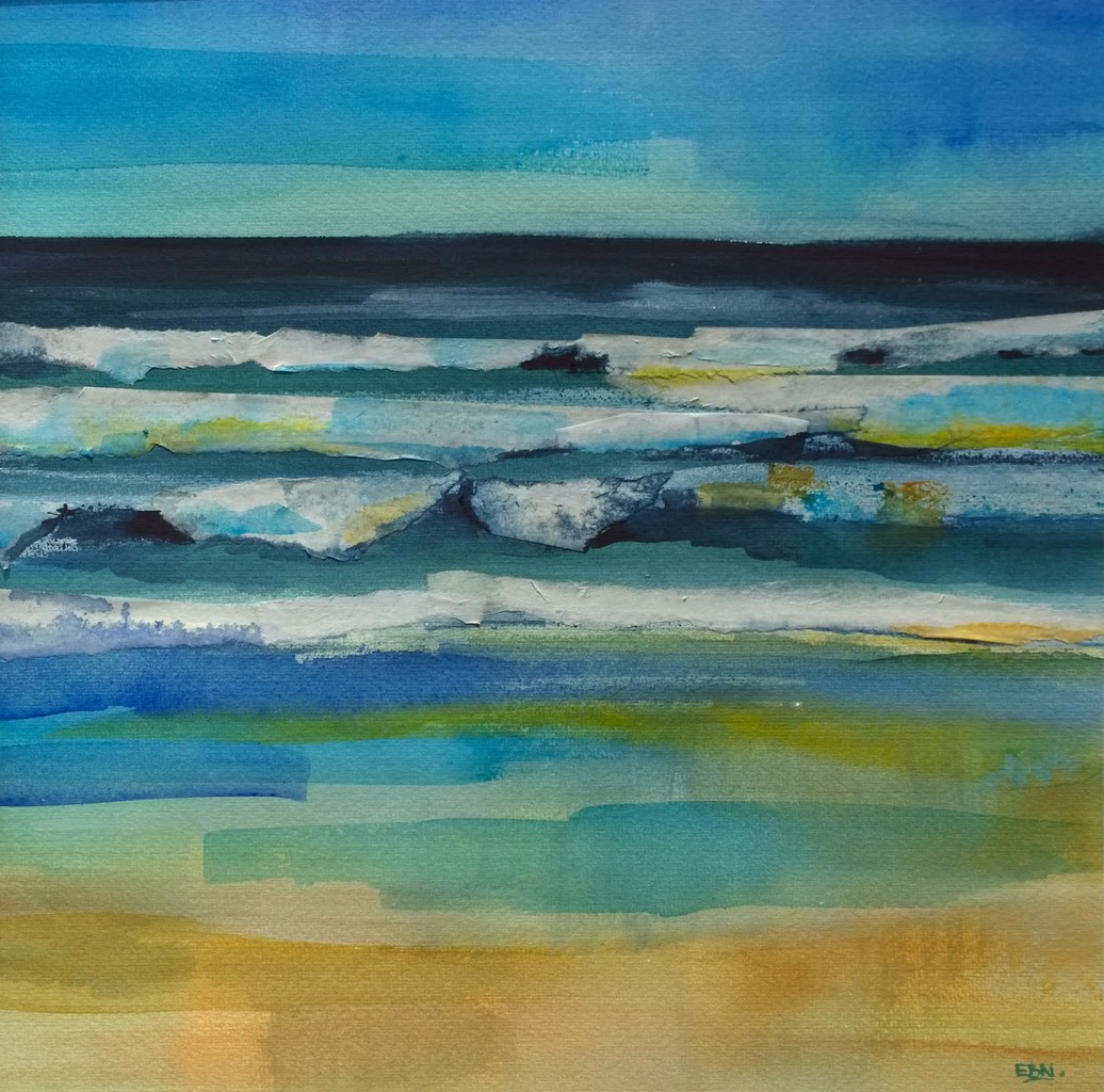 Zee Strand Abstract Geel Blauw Groen Vierkant Aquarel Collage Ameland