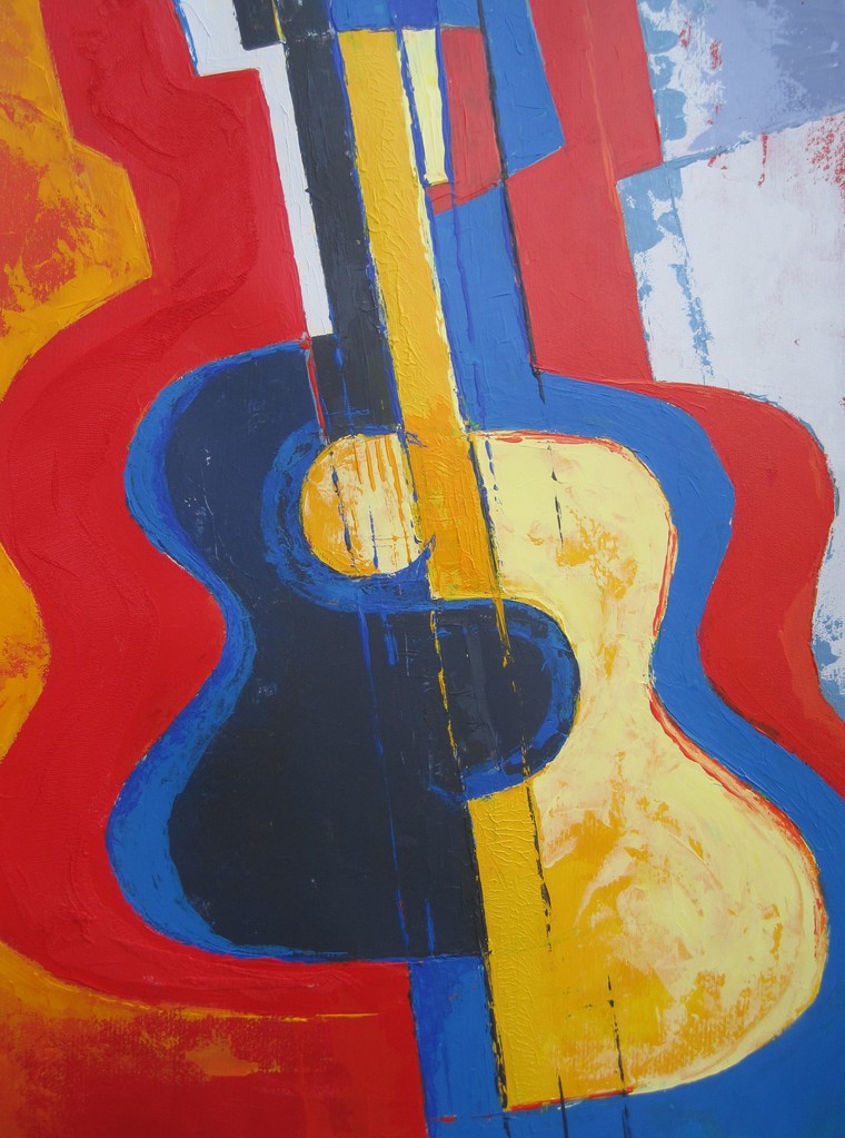 Schilderen met acryl en paletmes. Meeste schilderijen ontstaan vanuit innerlijk beeld, indruk of tekst.
