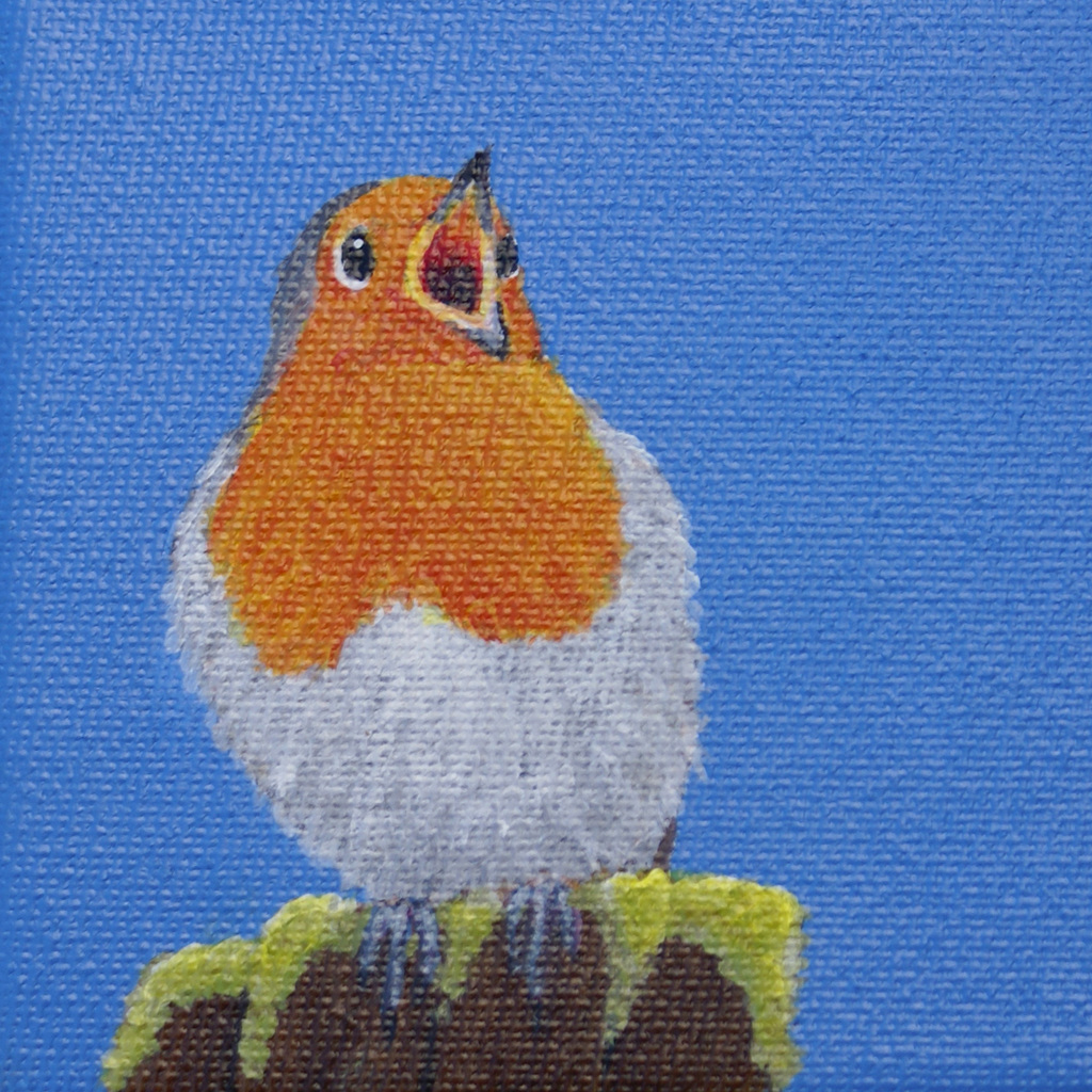 Acryl Vogel Painting Acrylic Schilderijtje Roodborstje Miniatuur Robin Miniature