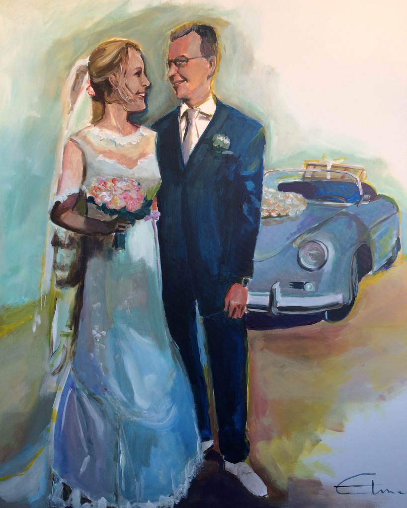 Live Paint Bruiloft Feest Bruidspaar Huwelijk Porsche Bruid Bruidegom Schilderij Cadeau Acryl