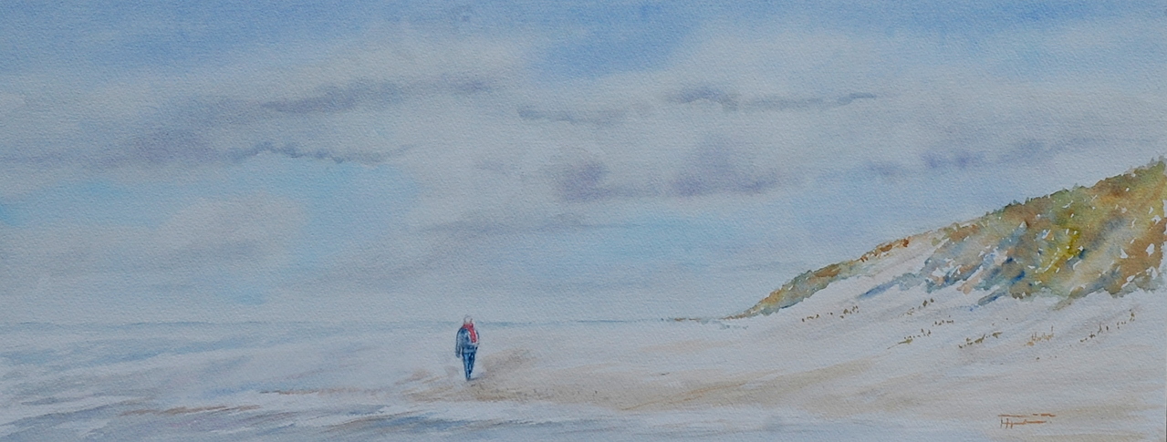 Dromen Het is stil op het strand dromend loop ik langs de vloedlijn mijn voetstappen achter latend in het zand de zee fluistert vertel het mij maar de wind ruist ik neem jou woorden mee wolken en de zon spelen wie niet weg is, is gezien langzaam trekt de zee zich terug de meeuwen lachen de eettent het verse krabbetje gaat zo open al dromend kom ik bij de plek waar ik het as van mijn lieve trouwe vriend mijn hond Moos heb uit gestrooid kijk in het rond daar komt hij aan rennen en springt tegen mij op samen rollen wij in het zand gooi een stukje hout in zee hij rent de zee in en weer terug nog een keer en nog een keer ik moet zo gaan zij ik en aaide hem over zijn kop ga nog even een biertje drinken bij Woest om hoog lopend kom ik op het terras de waterbak voor de hond staat al klaar langzaam dronk ik mijn biertje op nu moet ik echt gaan loop het duin op bovenaan draaide ik mij nog een keer om kijkend naar de horizon de zee het strand mijn vrijheid met beide handen in de lucht zwaaiend dag lieve jongen ben zo terug het strand pad af naar beneden bleef mijn droom achter boven op het duin er rolden zomaar tranen over mijn wangen het was fijn aan zee. Ben Fontein