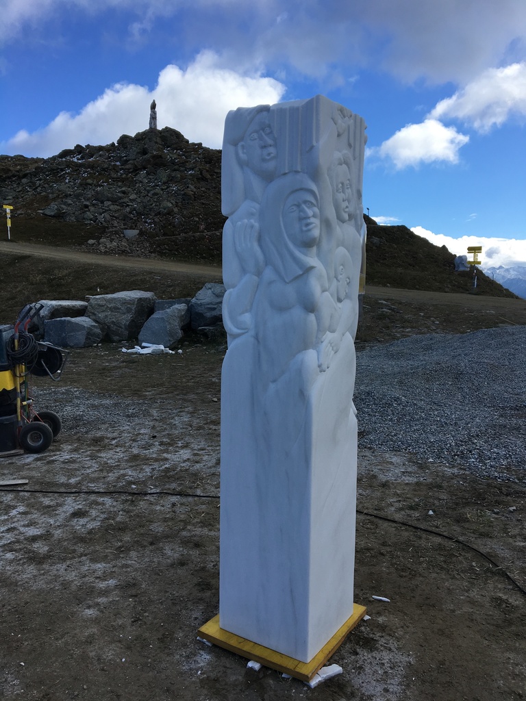 Zuil in het kader van het Kunstproject: Pillars of Freedom. Vervaardigd in Laaser Marmer. Bijzonder is dat deze zuil is vervaardigd op een hoogte van 2436 m. (Schönjoch, Fiss - (0ostenrijk) Deze Zuil van de Vrijheid heeft in 2019 een plaats gekregen in Landgraaf (Hoek Hofstraat-Heistraat). Sehnsucht nach Freiheit Leven in vrijheid een kostbaar goed Vrijheid is van onschatbare waarde Geboorterecht voor elk levend wezen Intens blijft het verlangen De Vrijheid te omarmen En in vrijheid te kunnen baden
