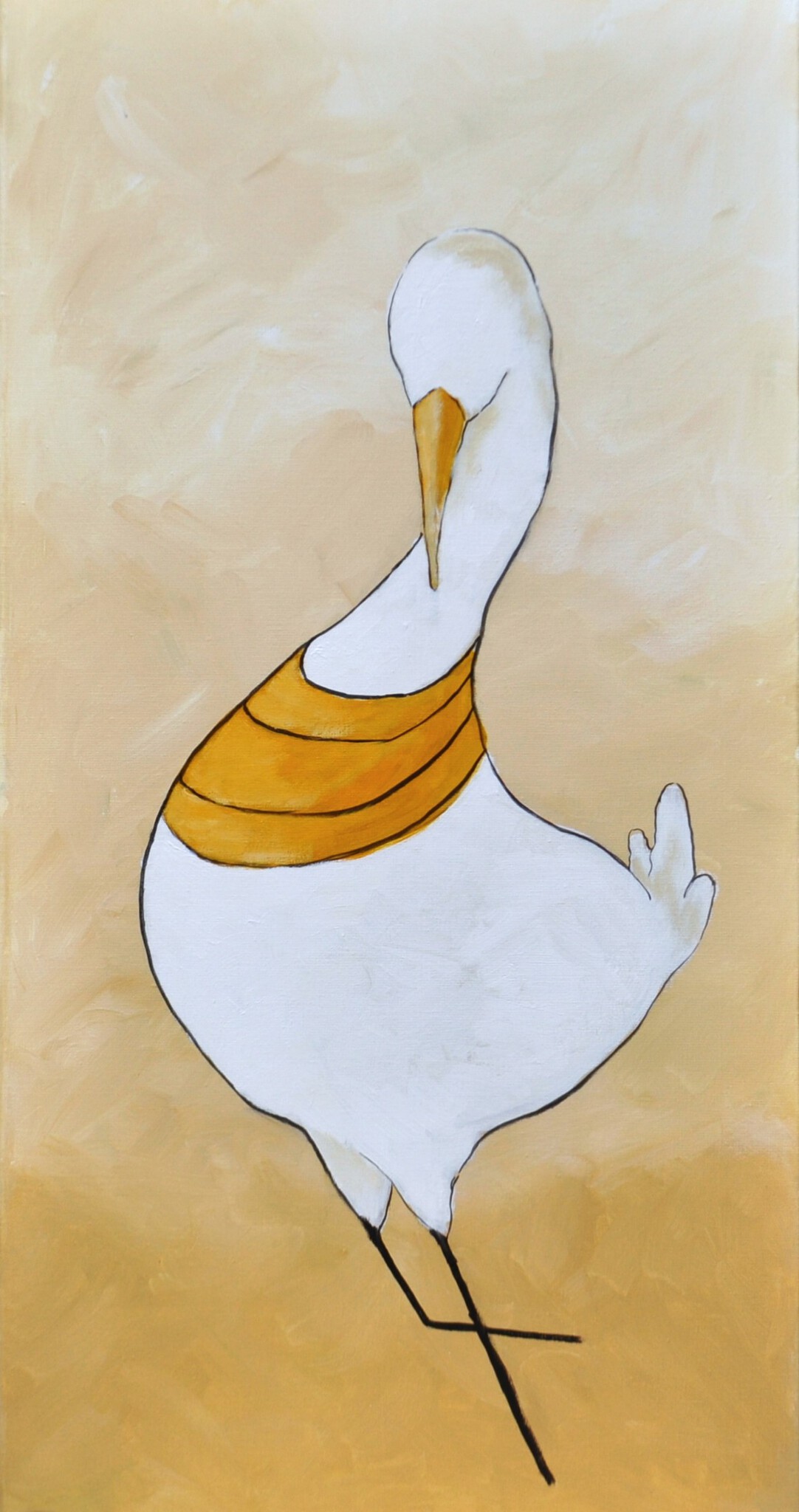 Wit Acryl Vogel Portret Doek Vrouwelijk Zachtgeel Verlegen