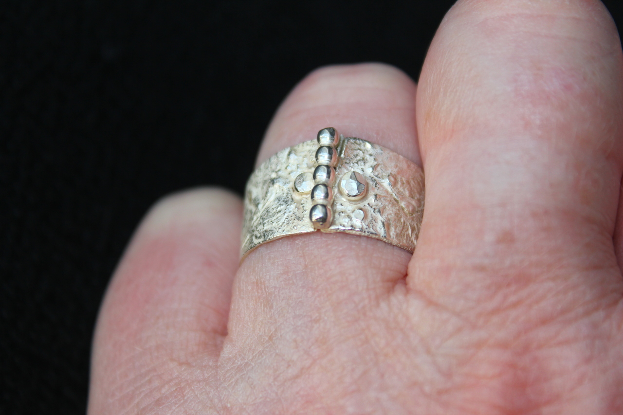 Ring van Zilver emt pareldraad erop. Open aan de onderkant ( past altijd)