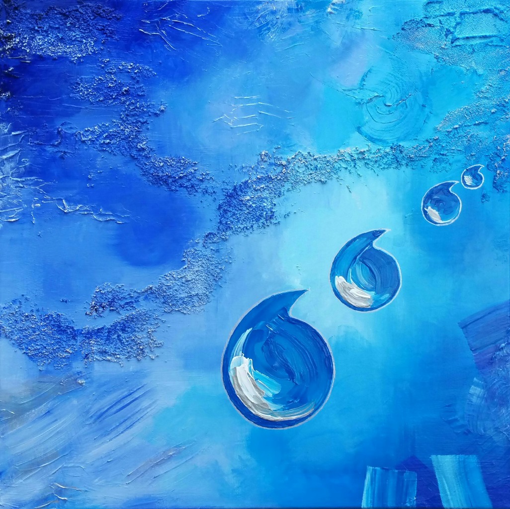 Een spiritueel schilderij in een serie aangaande de chakra-kleuren. Dit werk staat voor het 6e Chakra ( blauw) het "derde-oog-chakra".