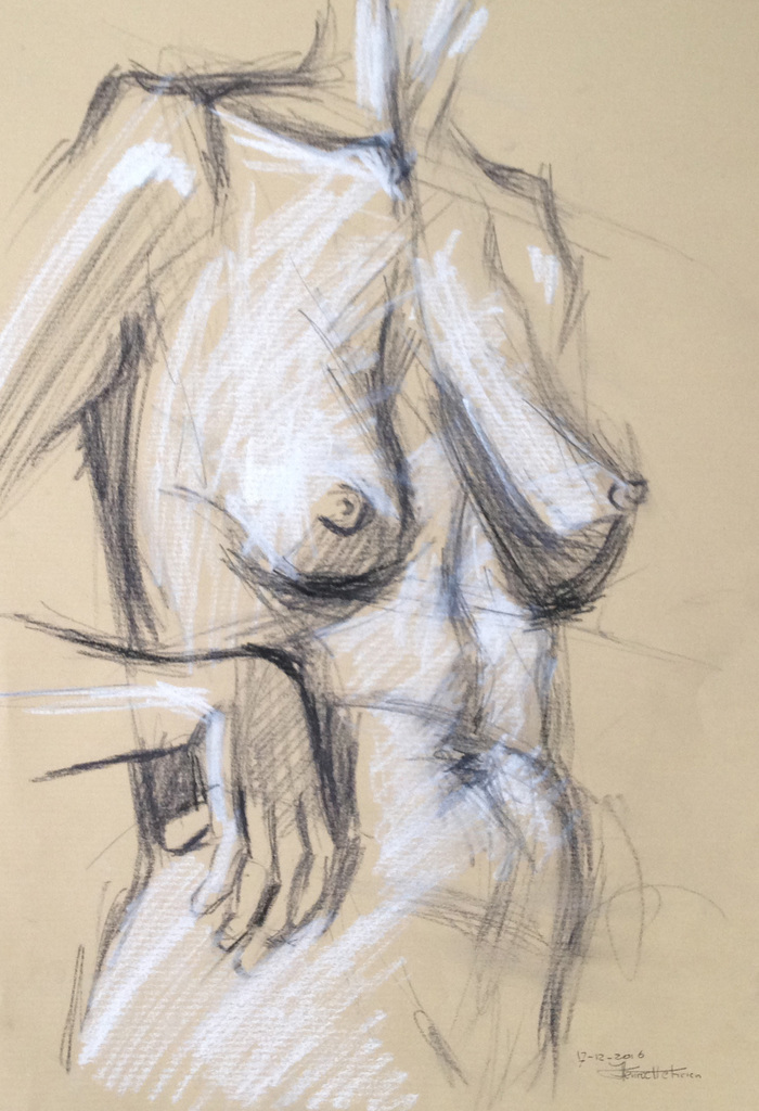Naaktmodel, pastelpotloden.