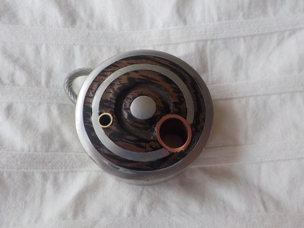 In verband met kerst heb ik voor al mijn Familie en Vrienden een sleutel hanger gemaakt, dit is er een van de in totaal 30. Ze zijn allemaal anders van vorm en/of materiaal. Materiaal bestond uit :Roestvrij staal- Padoek hout- Wenge hout- Grenadille hout- Esdoorn hout-Purperhart hout Messing- Aluminium- en 50/50 soldeer.