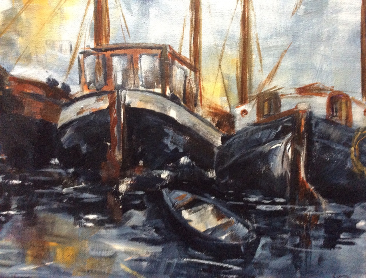 Jacolien 1950, (Frl), haar werk is figuratief en impressionistisch. Sfeer,harmonie,verlatenheid,inspireren haar om havens met schepen, landschappen en mensen te tekenen en te schilderen met acryl, olie verf, aquarel, houtskool, kryt, inkt.
