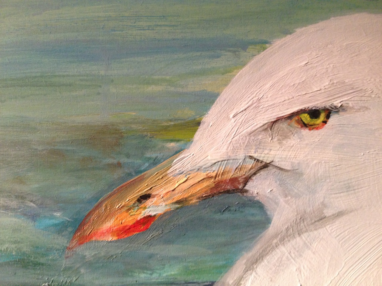duidelijk zichtbare penseelstreken, de meeuw enorm uitvergroot