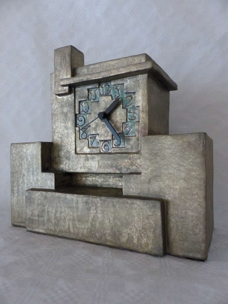 Klok in koper oxyde glazuur, cijfers in turquoise