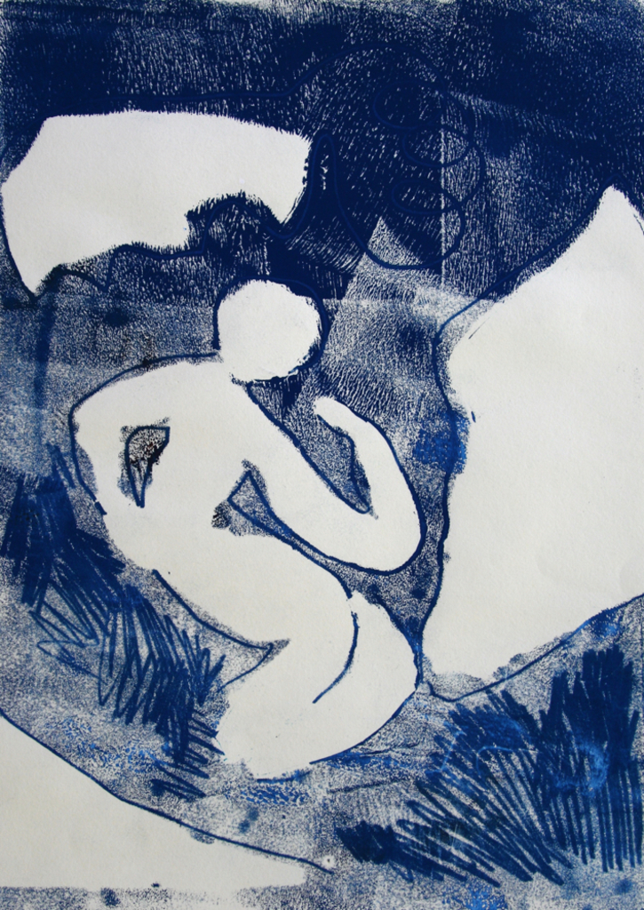 Landscape Composition Abstract Paper Printmaking Modern Original Lyrical Figurative Expressionistic Colorful People