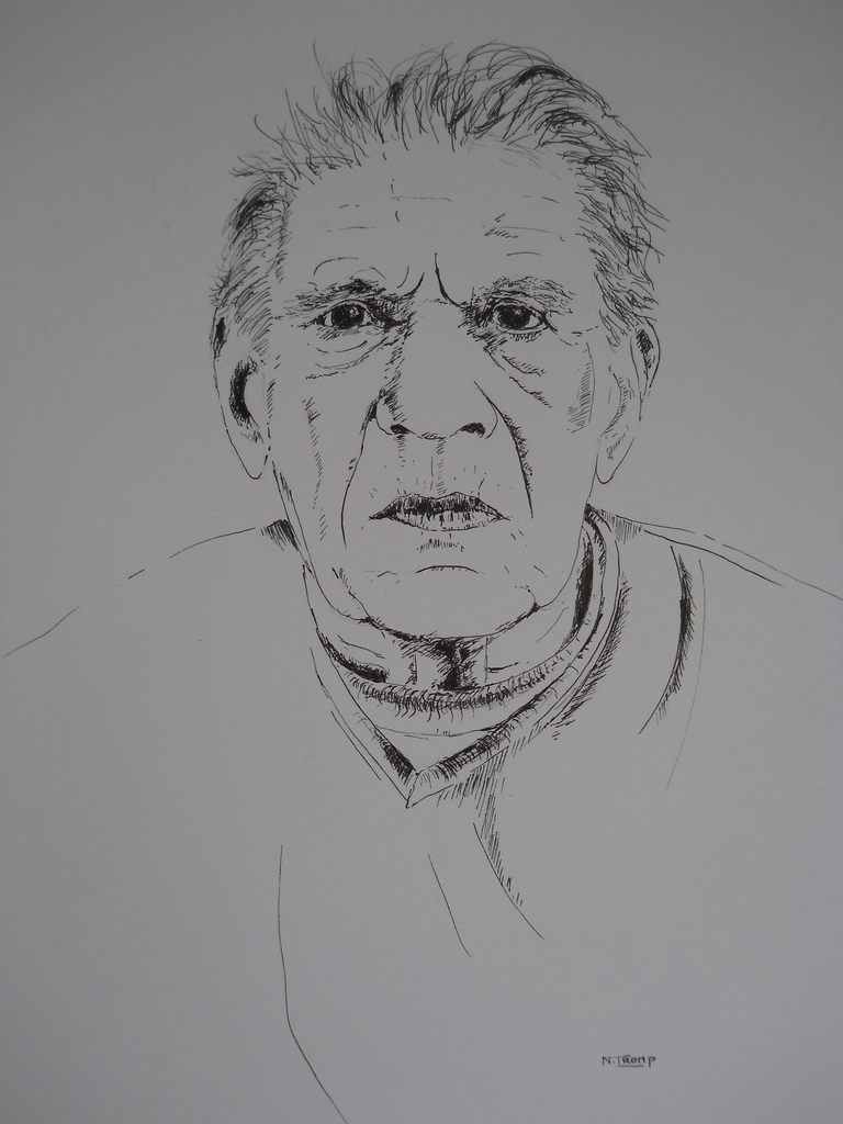 Welkom op de website met tekeningen en schilderijen van Nico Tromp. Ik ben geboren in Santpoort-Noord. Op enkele korte cursussen en workshops na ben ik autodidact. Hoewel ik vroeger al veel tekende ben ik pas veel later, vanaf 1999 weer echt serieus gaan tekenen en schilderen. De aquarellen die ik maak zijn vaak licht van kleur en textuur. De portretten zijn gemaakt met zacht potlood op wit papier of geschilderd als aquarel of met gemengde techniek. Met vriendelijke groeten, Nico Dit is een portret van Adrianus Tromp, getekend met zacht polood. Hij is de jongste broer van mijn vader en in de zomer van 1944 op 17jarige leeftijd verdronken tijdens het zwemmen in het Noordzeekanaal.