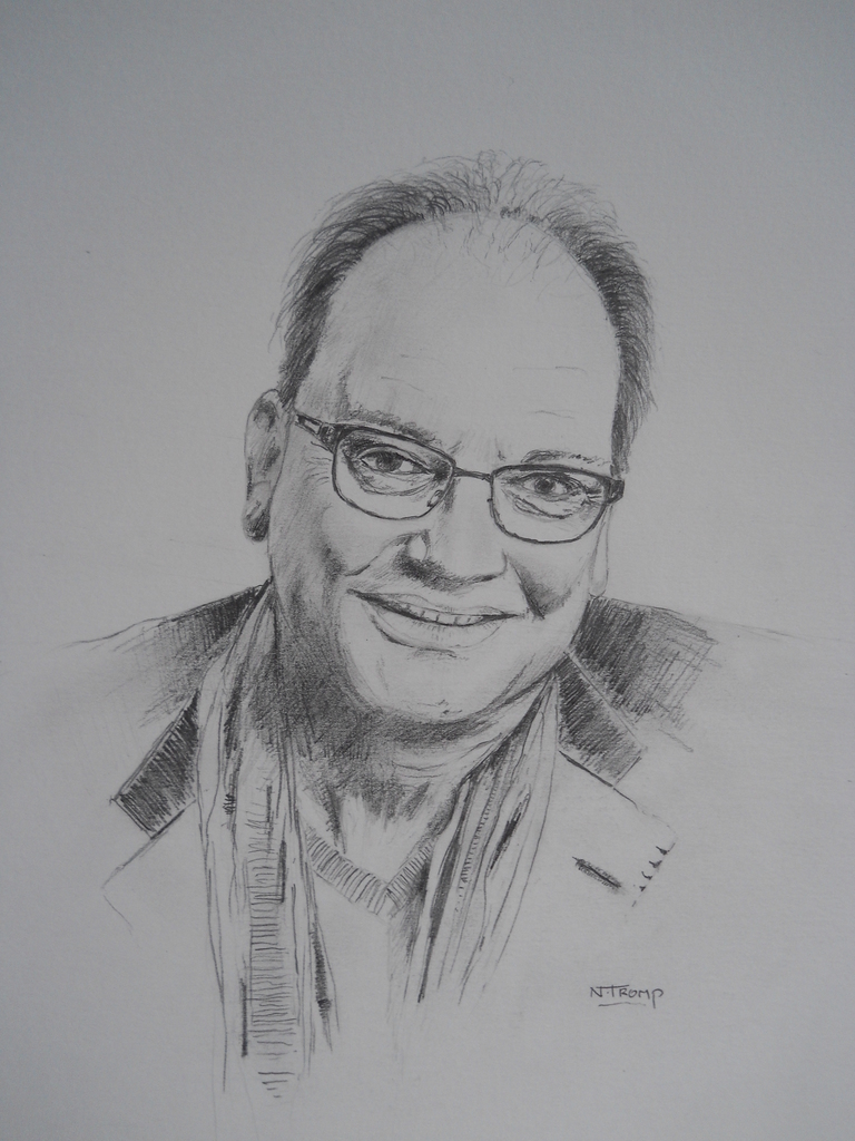 Welkom op de website met tekeningen en schilderijen van Nico Tromp. Ik ben geboren in Santpoort-Noord. Op enkele korte cursussen en workshops na ben ik autodidact. Hoewel ik vroeger al veel tekende ben ik pas veel later, vanaf 1999 weer echt serieus gaan tekenen en schilderen. De aquarellen die ik maak zijn vaak licht van kleur en textuur. De portretten zijn gemaakt met zacht potlood op wit papier of geschilderd als aquarel of met gemengde techniek. Met vriendelijke groeten, Nico Dit is een portret van Adrianus Tromp, getekend met zacht polood. Hij is de jongste broer van mijn vader en in de zomer van 1944 op 17jarige leeftijd verdronken tijdens het zwemmen in het Noordzeekanaal.