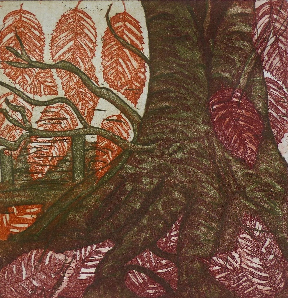 Oude bomen met vele wortels zorgen voor standvastigheid op de helling van het Arboretum. ingelijst +passpartout 40x40 cm